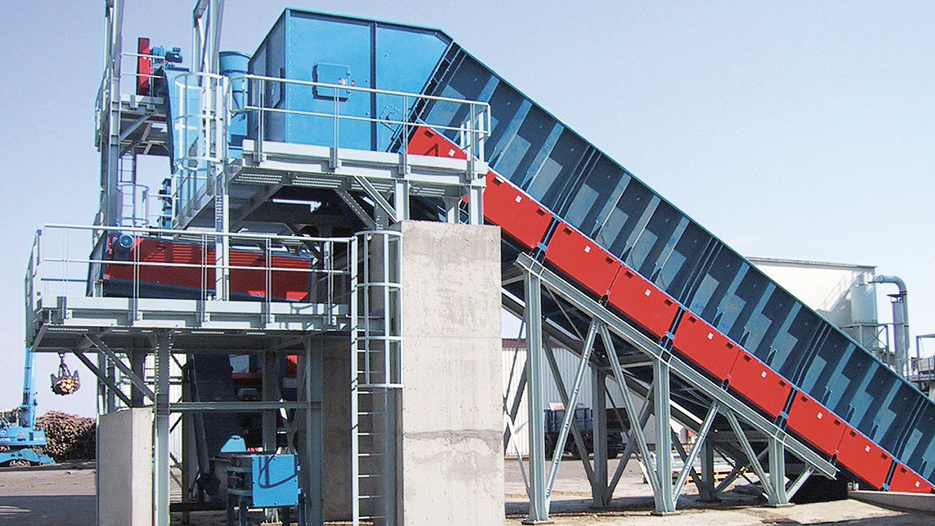 The machine is designed to convey wood trimmings of various sizes for processing.