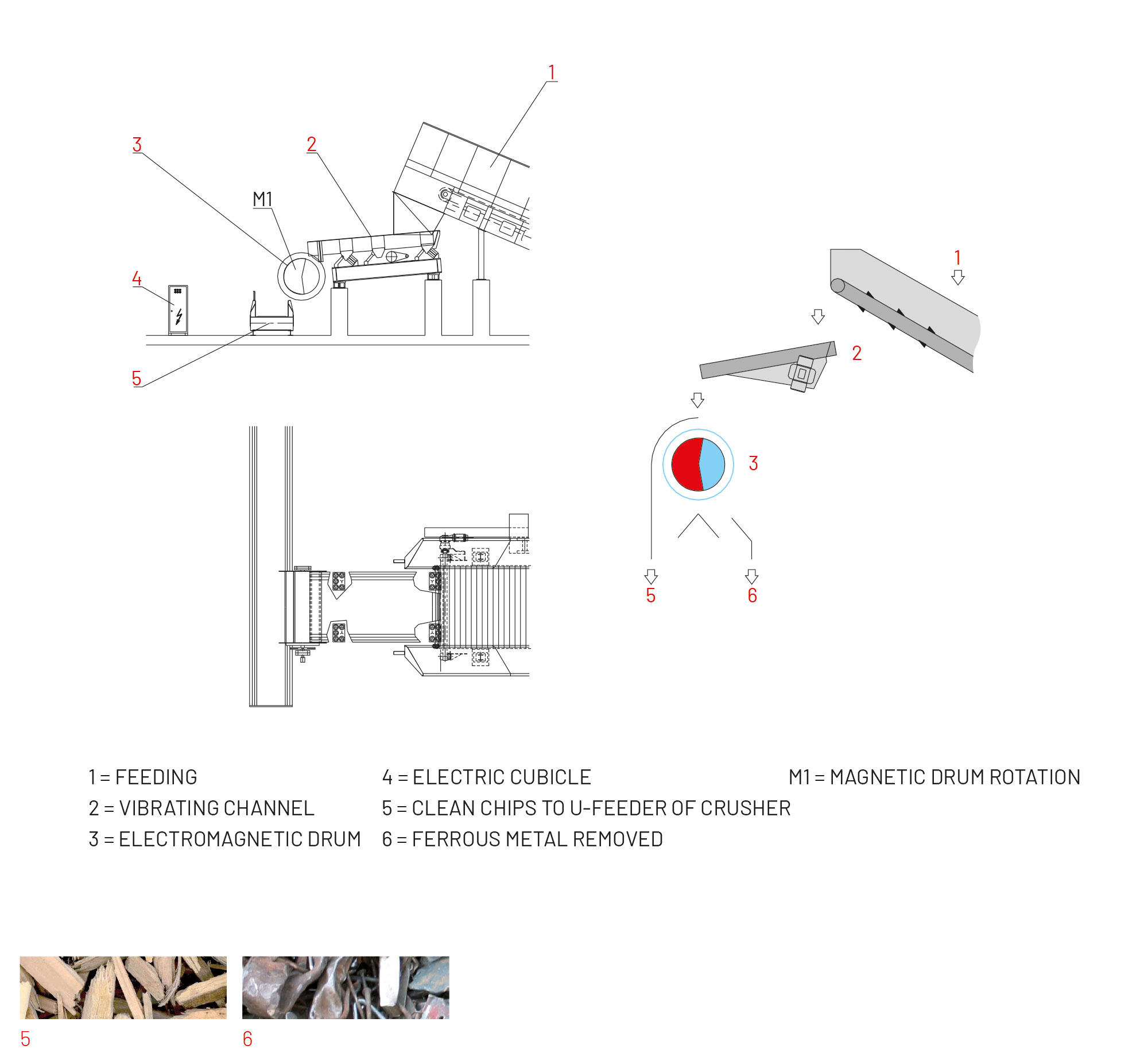 MODEL | CAPACITY BULKY STUFF m3/h | ELECTROMAGNETIC DRUM mm | INSTALLED POWER kW | WEIGHT APPROX. kg | WEIGHT APPROX. kg |