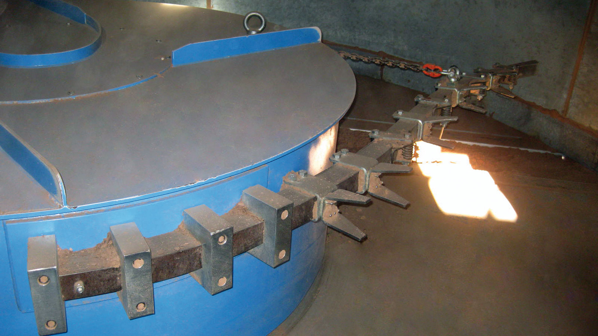 The machine is designed to remove the material at the bottom of a silo in order to favour dropping it into extraction screws.