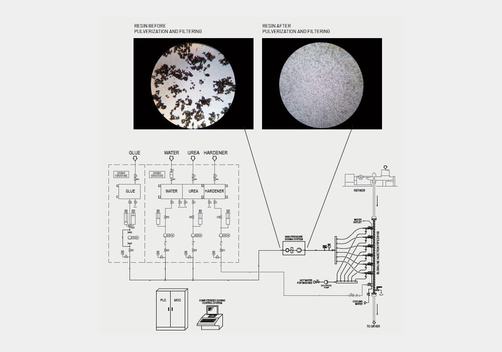 MDF HI-JET BLOW-LINE is a resination system designed to achieve optimal resin distribution in the manufacture of MDF panels.