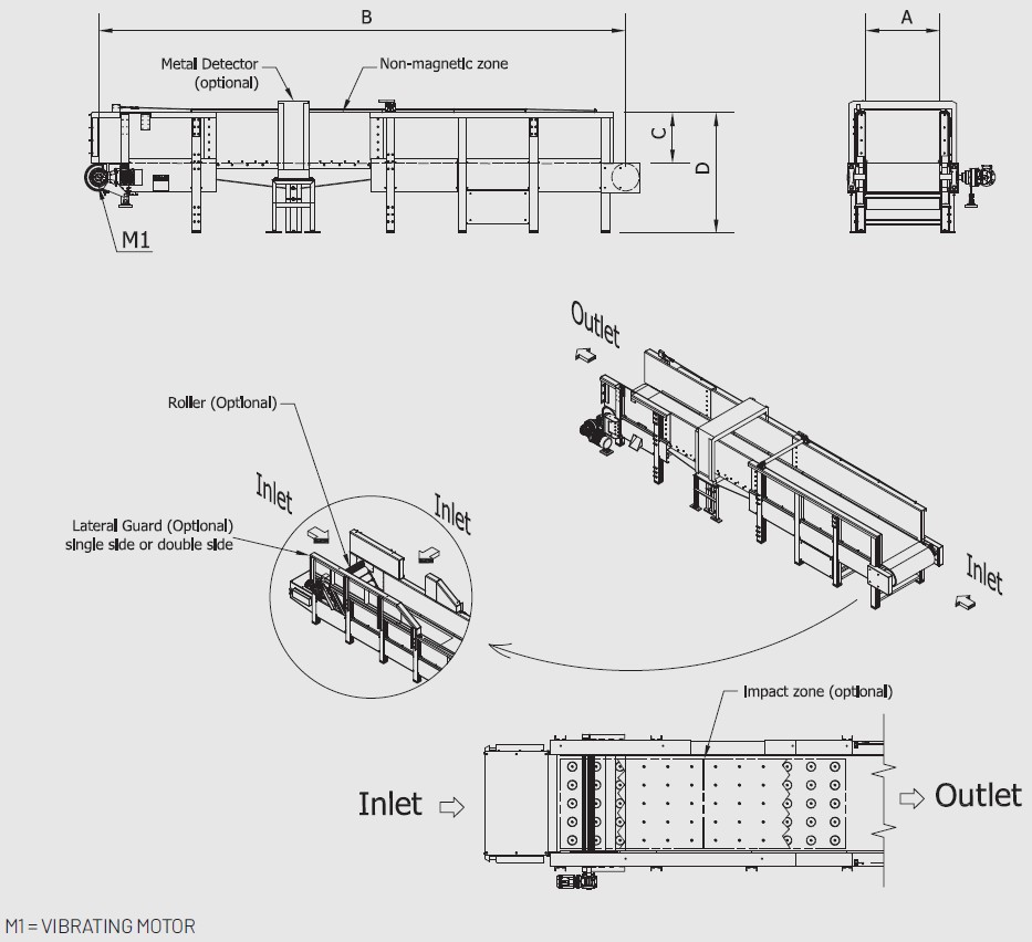 • Design according to wood type with reinforced impact zone, special sliding of the belt