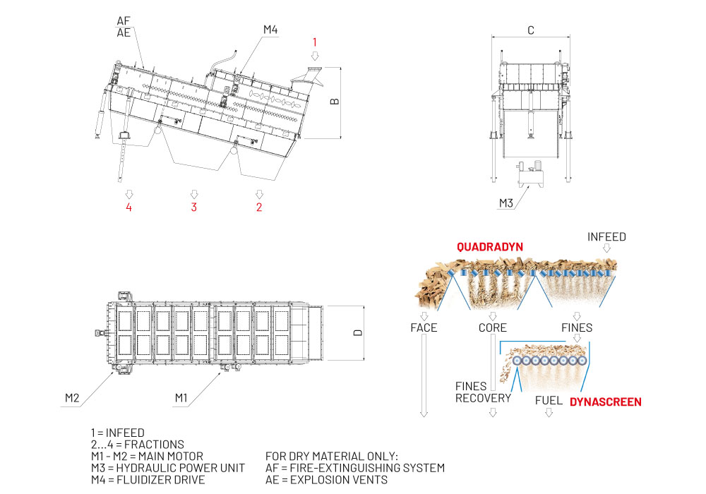 Q-DYN.1-5000-2200 | 5000 | 2530 | 3520 | 2200 | To size according to type of material and number of fractions to classify | According to number of shafts | According to number of shafts | 5,5 | - | According to number of shafts |